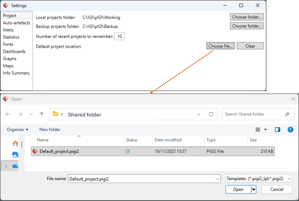 Set this file path to load a custom default project template when you start new p:IGI+ projects.