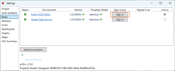 - Select the Link to radio button for your desired Metis server, and then click Sign in.